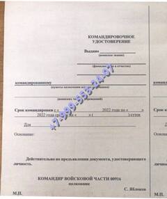 Заказать командировочное удостоверение военнослужащего в Красноуральске можно и по иным причинам, например, необходимо срочно ехать на учения или в зону боевых действий. В таком случае следует обращаться к руководству с заявлением. Если человек потерял, или испортил документы, он может обратиться в нашу компанию. Купить командировочное удостоверение военнослужащего с доставкой мы предлагаем недорого.
